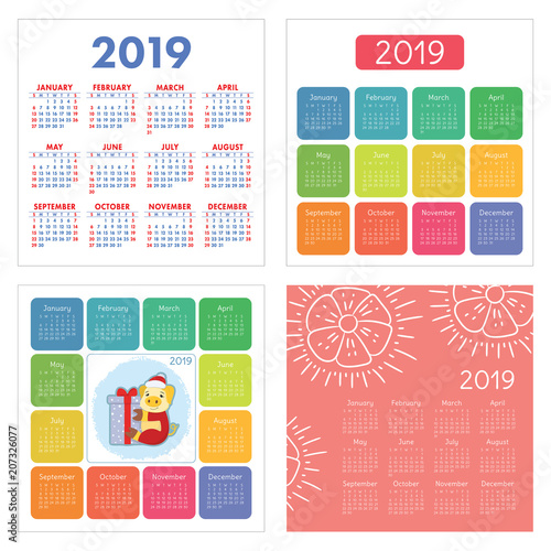 Template of the pocket calendar 2019.